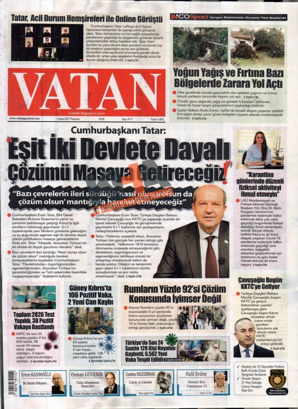 KKTC'de Gazeteler Bugün Ne Manşet Attı? (1 Şubat 2021)