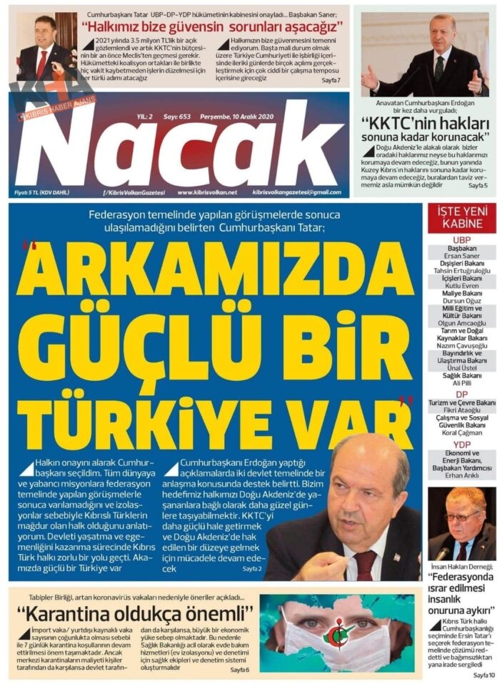 KKTC'de Gazeteler Bugün Ne Manşet Attı? ( 10 Aralık 2020 Perşembe )