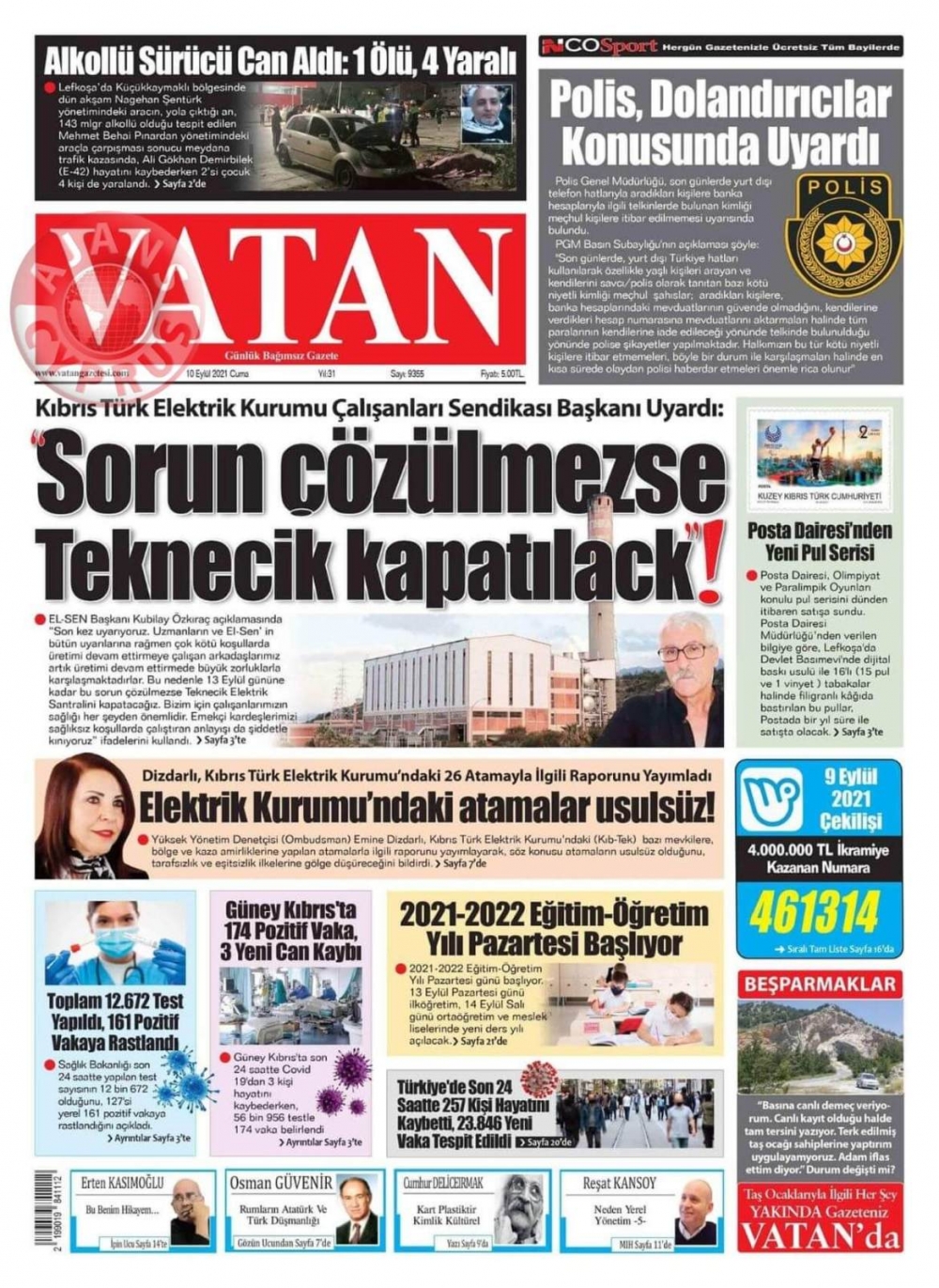 KKTC'de Gazeteler Bugün Ne Manşet Attı? (10 Eylül 2021)