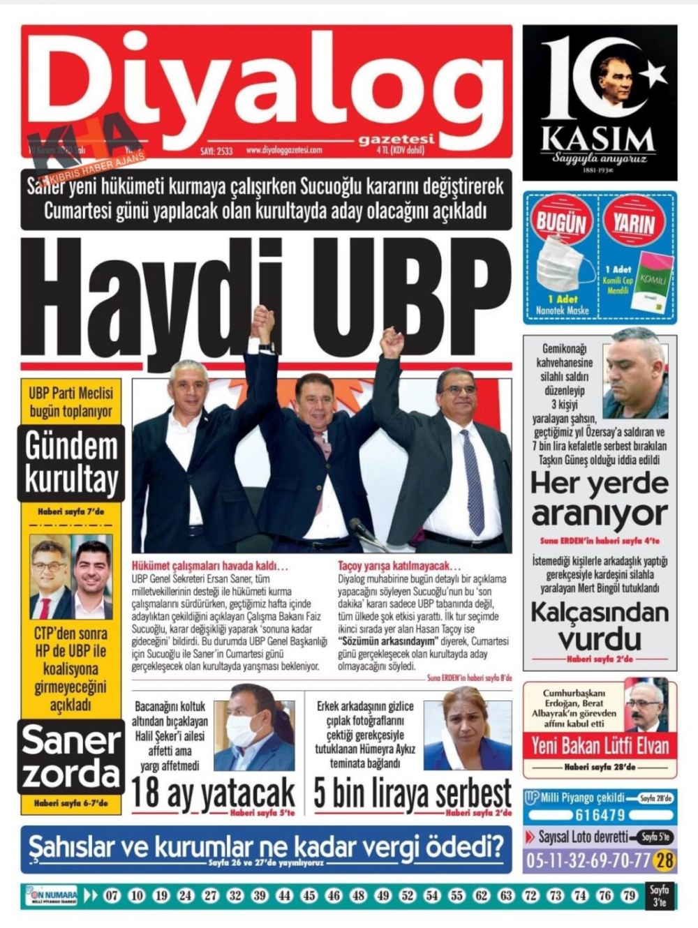 KKTC'de Gazeteler Bugün Ne Manşet Attı? ( 10 Kasım 2020 Salı )