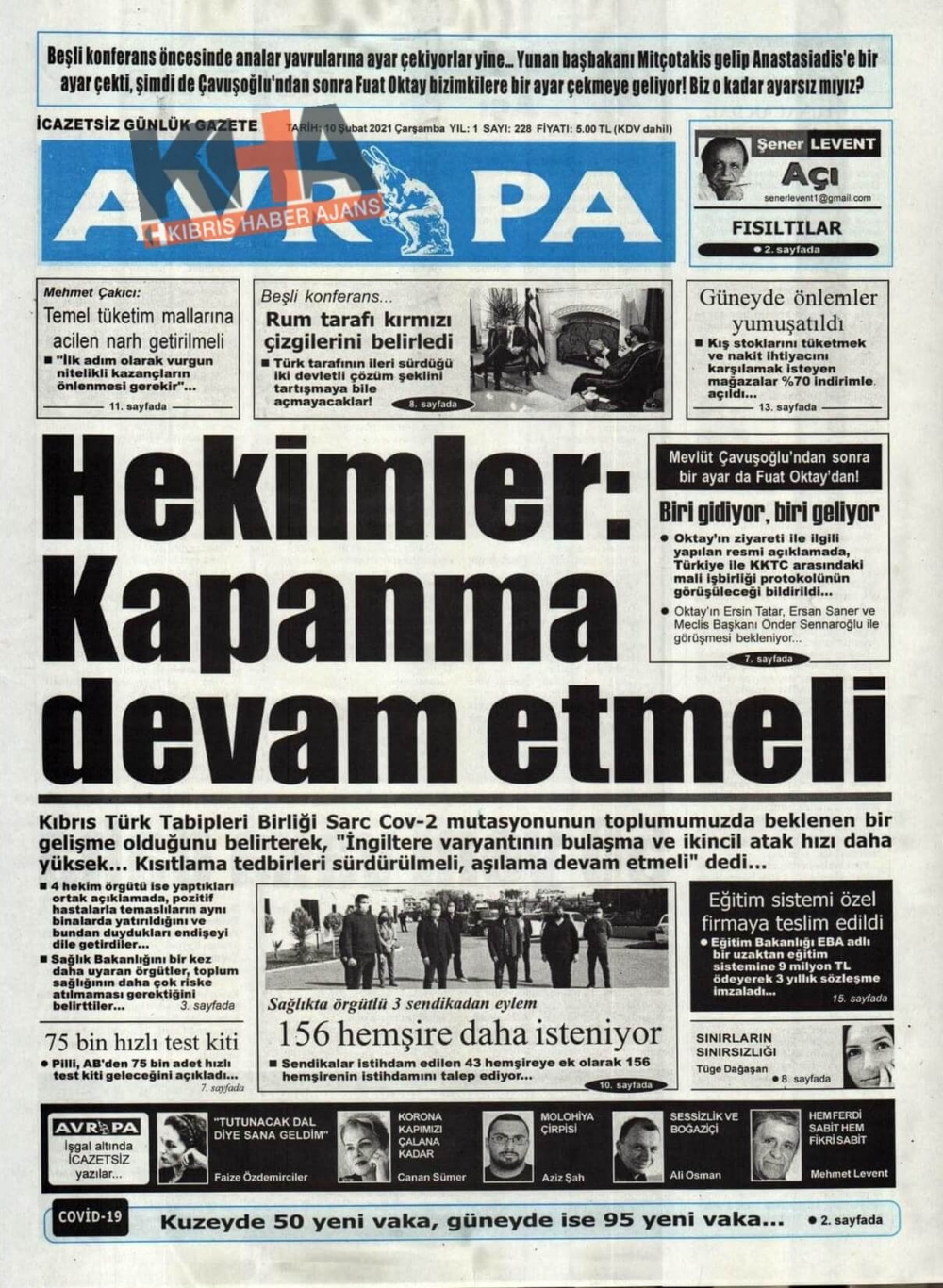 KKTC'de Gazeteler Bugün Ne Manşet Attı? (10 Şubat 2021)
