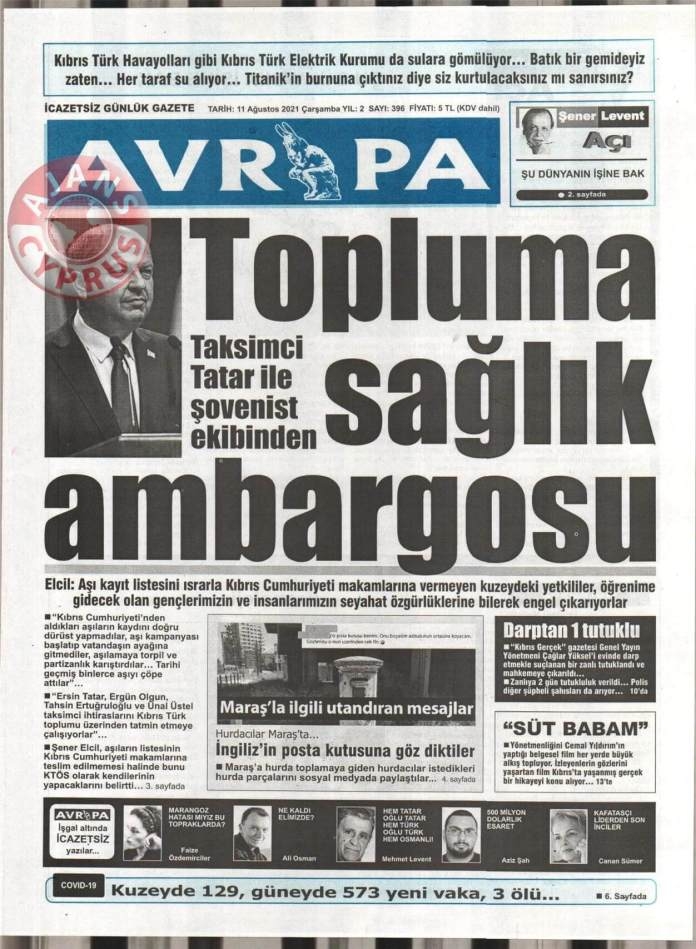 KKTC'de Gazeteler Bugün Ne Manşet Attı? (11 Ağustos 2021)