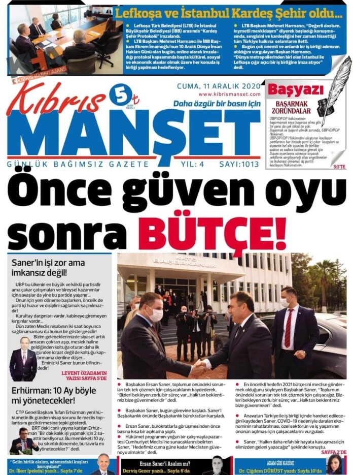 KKTC'de Gazeteler Bugün Ne Manşet Attı? ( 11 Aralık 2020 Cuma )