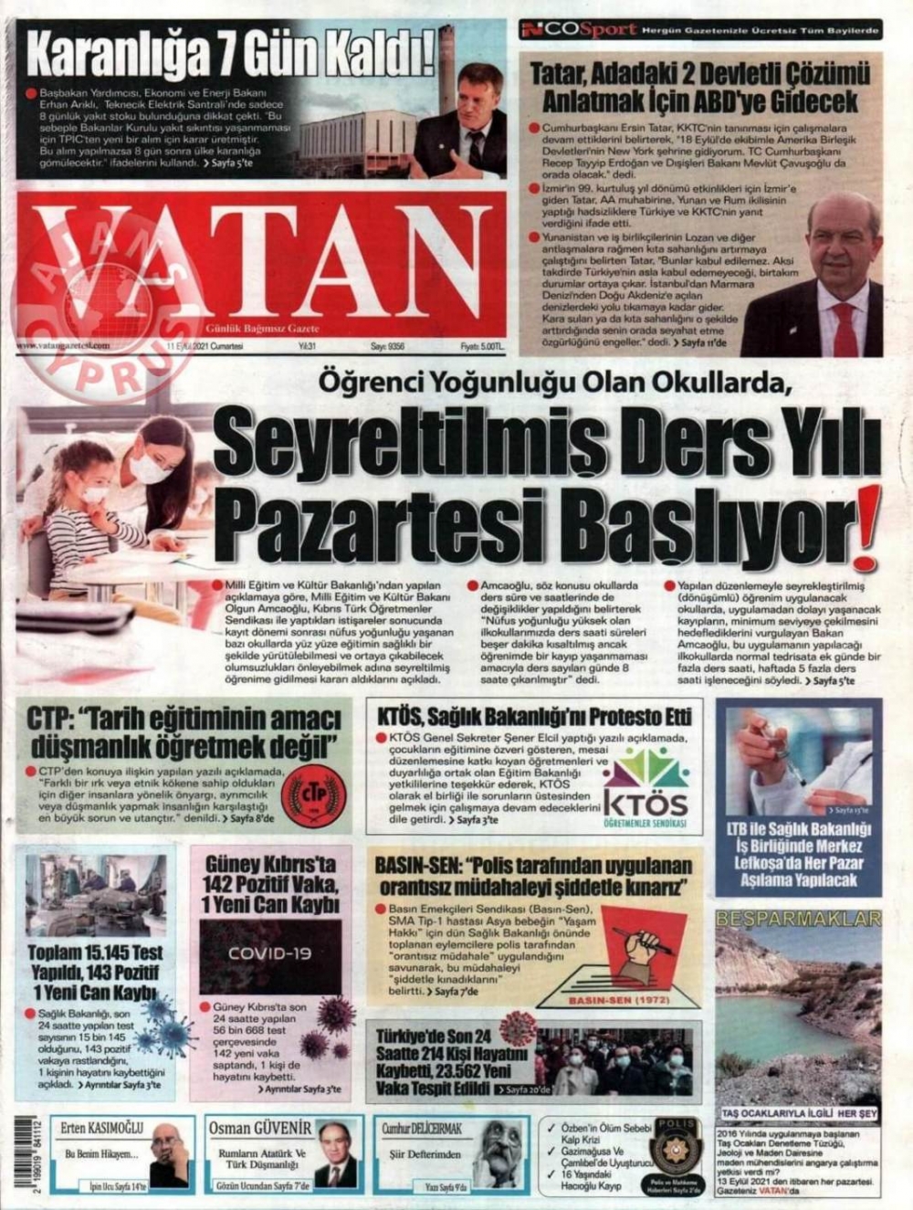 KKTC'de Gazeteler Bugün Ne Manşet Attı? (11 Eylül 2021)