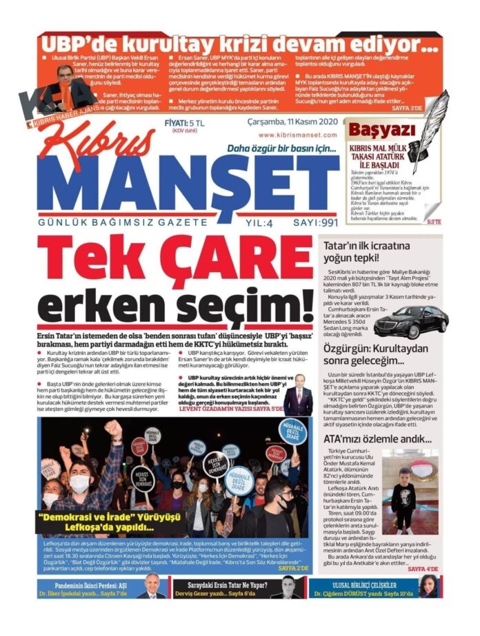 KKTC'de Gazeteler Bugün Ne Manşet Attı? ( 11 Kasım 2020 Çarşamba )