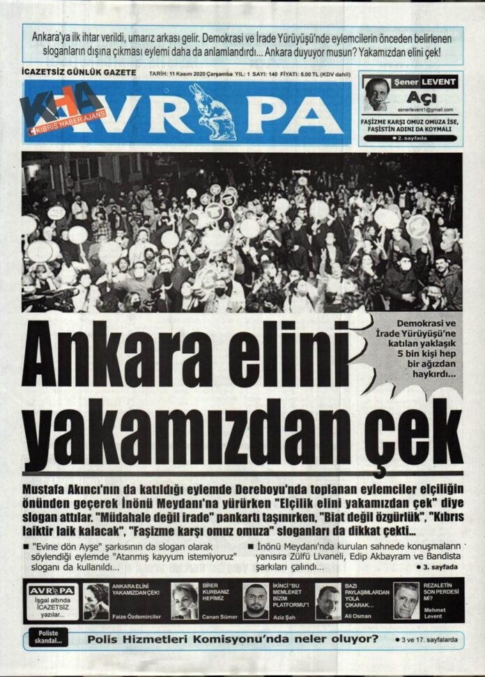KKTC'de Gazeteler Bugün Ne Manşet Attı? ( 11 Kasım 2020 Çarşamba )
