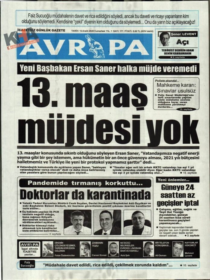 KKTC'de Gazeteler Bugün Ne Manşet Attı? (12 Aralık 2020 Cumartesi)