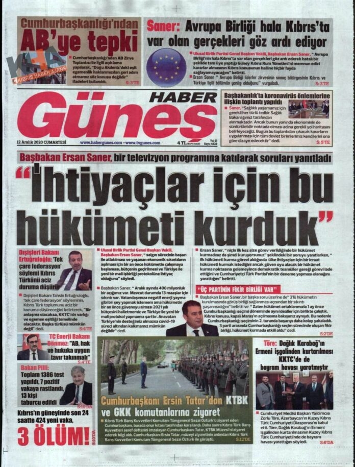 KKTC'de Gazeteler Bugün Ne Manşet Attı? (12 Aralık 2020 Cumartesi)