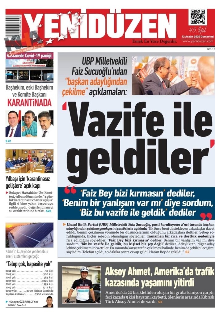 KKTC'de Gazeteler Bugün Ne Manşet Attı? (12 Aralık 2020 Cumartesi)