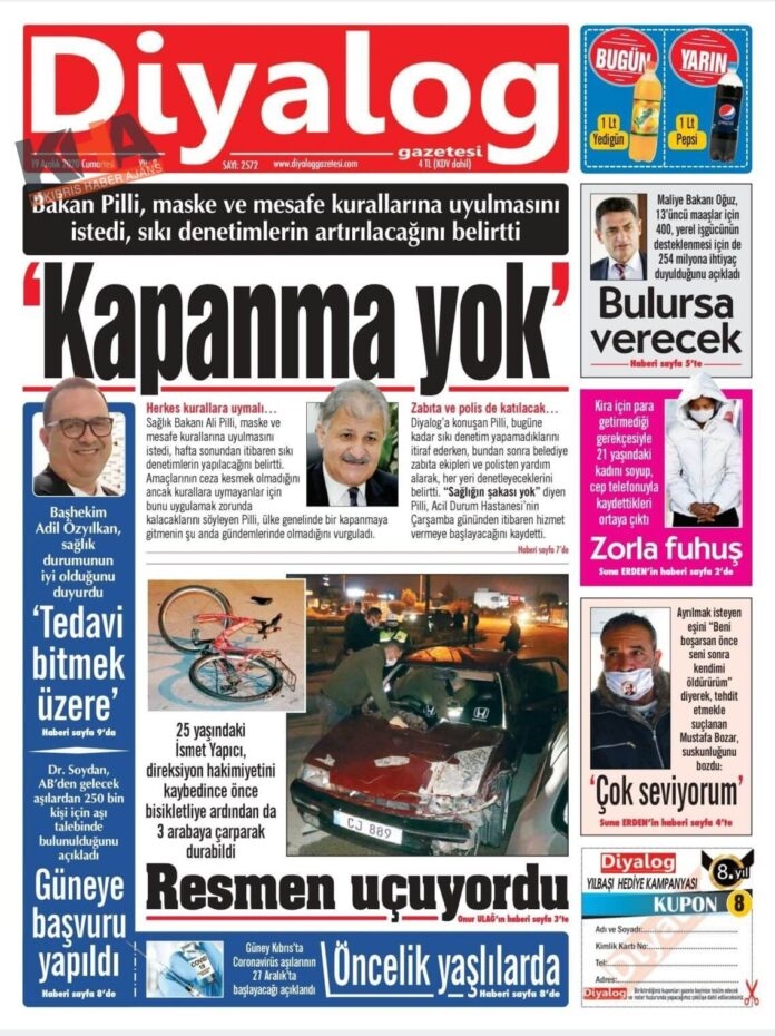 KKTC'de Gazeteler Bugün Ne Manşet Attı? ( 12 Aralık 2020 Cumartesi )
