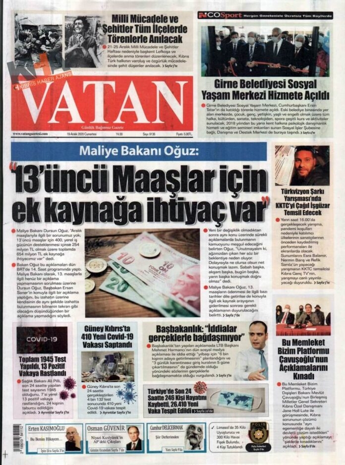KKTC'de Gazeteler Bugün Ne Manşet Attı? ( 12 Aralık 2020 Cumartesi )