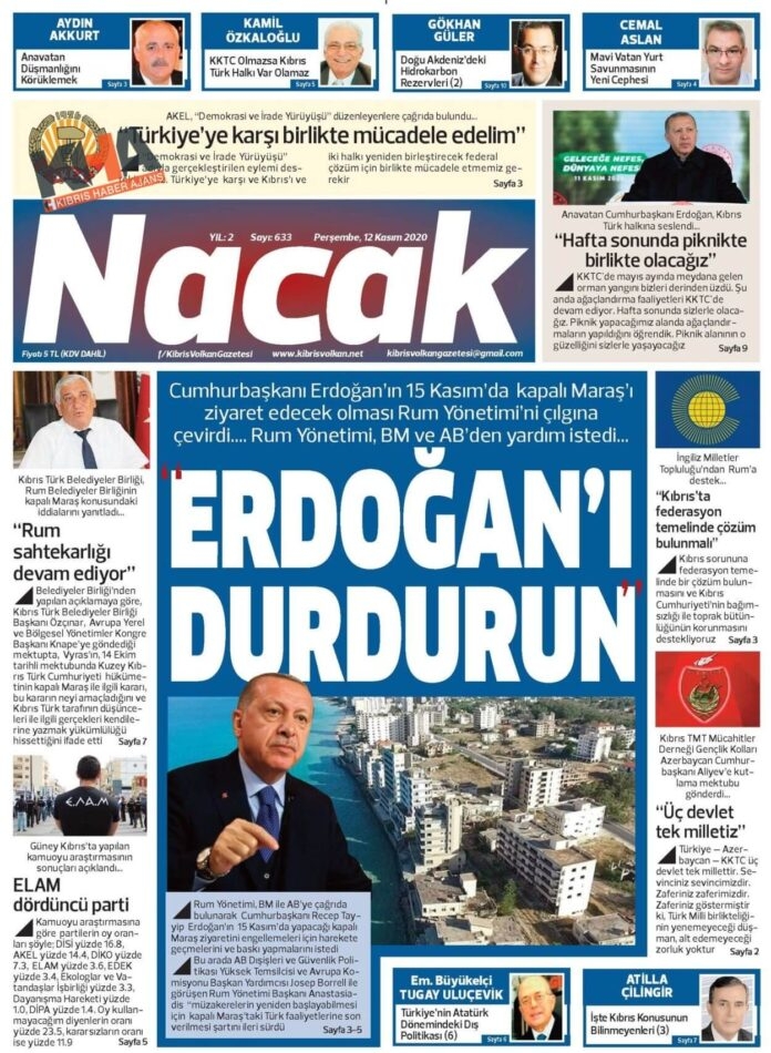 KKTC'de Gazeteler Bugün Ne Manşet Attı? ( 12 Kasım 2020 Perşembe )