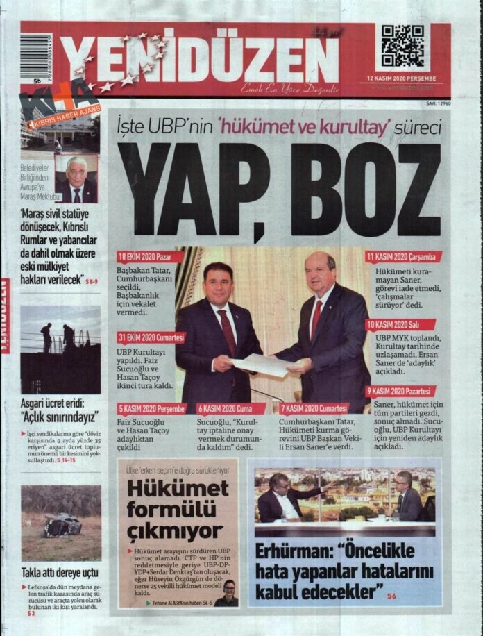 KKTC'de Gazeteler Bugün Ne Manşet Attı? ( 12 Kasım 2020 Perşembe )