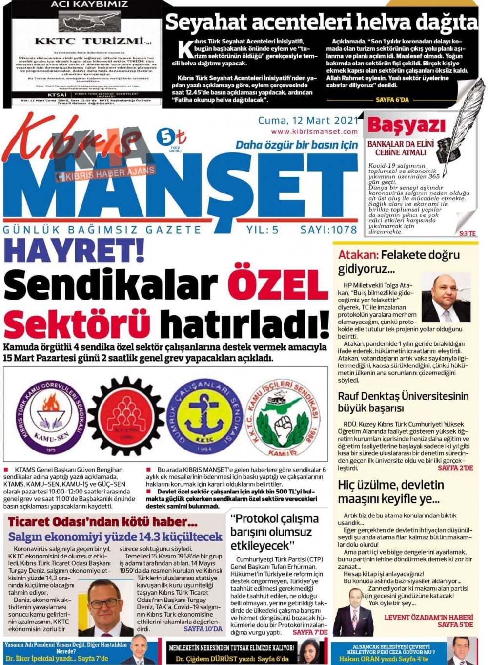 KKTC'de Gazeteler Bugün Ne Manşet Attı? (12 Mart 2021)