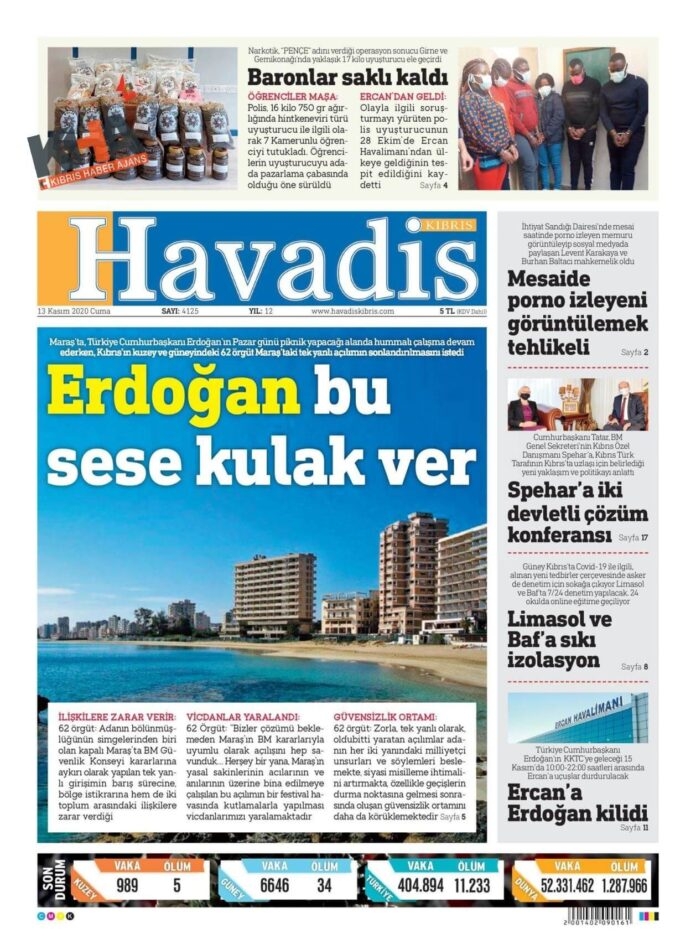 KKTC'de Gazeteler Bugün Ne Manşet Attı? (13 Kasım 2020 Cuma)