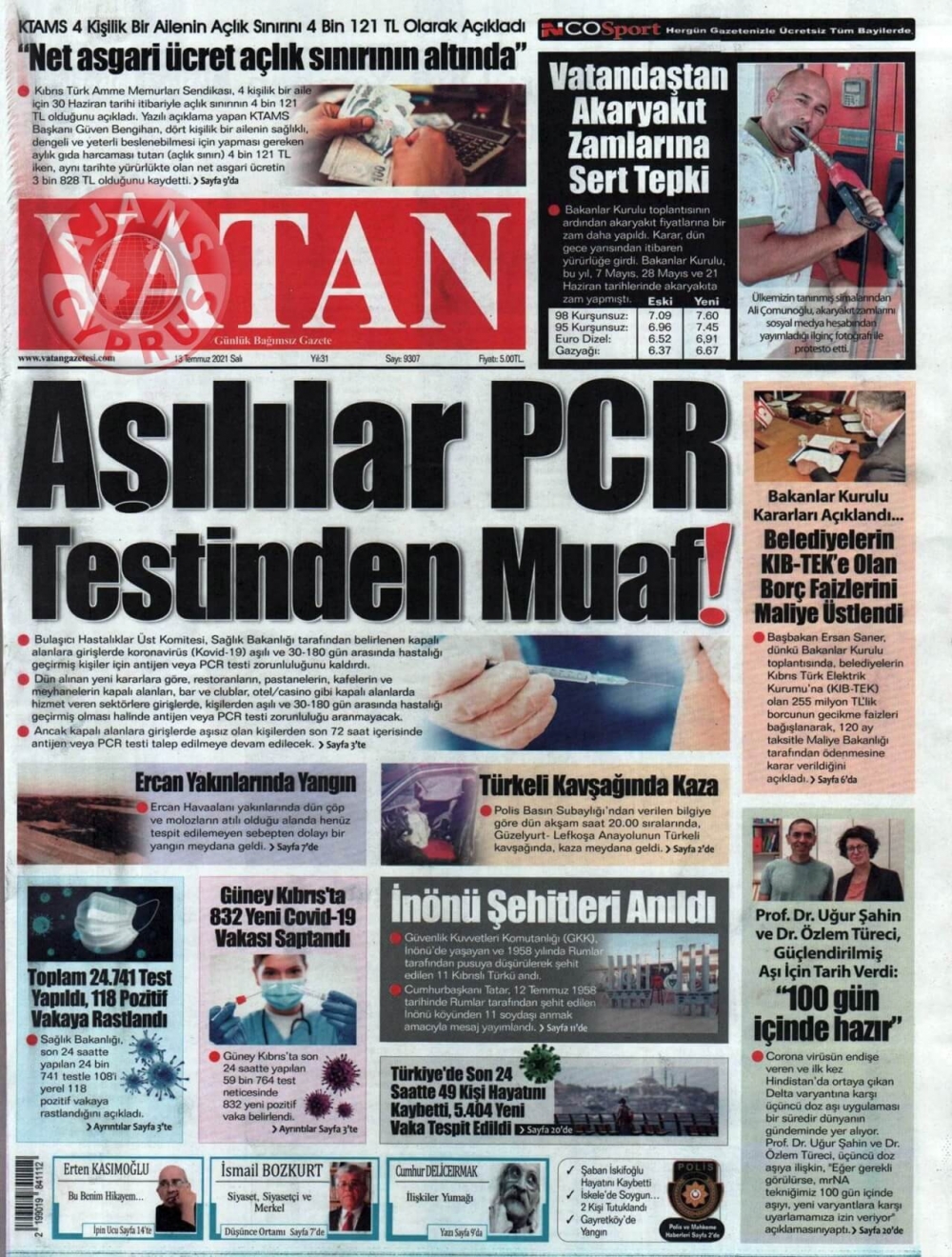KKTC'de Gazeteler Bugün Ne Manşet Attı? (13 Temmuz 2021)
