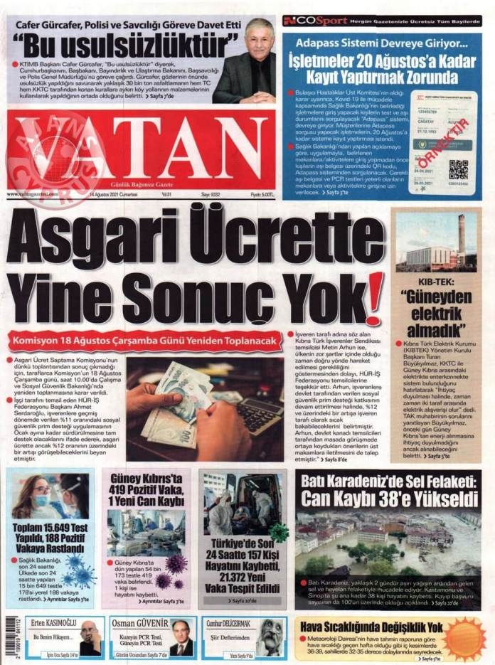 KKTC'de Gazeteler Bugün Ne Manşet Attı? (14 Ağustos 2021)