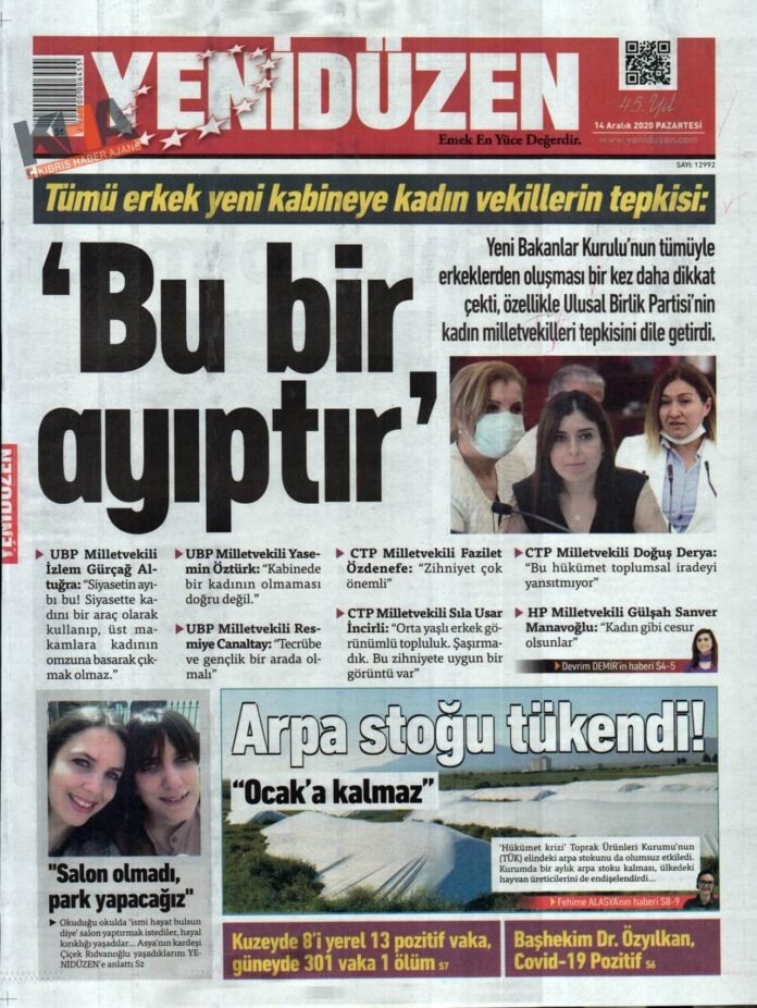 KKTC'de Gazeteler Bugün Ne Manşet Attı? ( 14 Aralık 2020 Pazartesi )