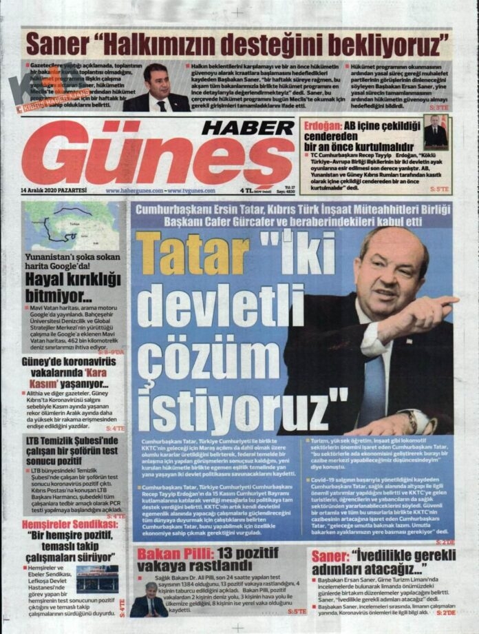 KKTC'de Gazeteler Bugün Ne Manşet Attı? ( 14 Aralık 2020 Pazartesi )