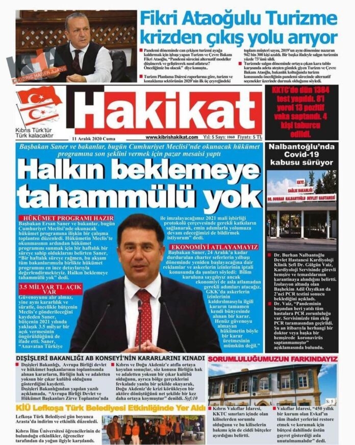 KKTC'de Gazeteler Bugün Ne Manşet Attı? ( 14 Aralık 2020 Pazartesi )