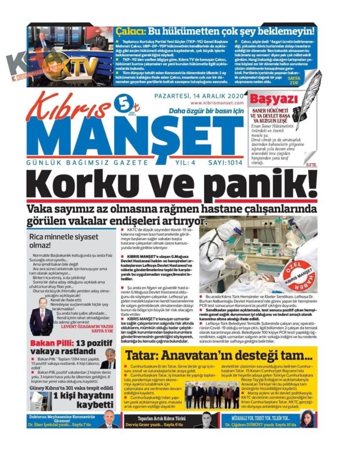 KKTC'de Gazeteler Bugün Ne Manşet Attı? ( 14 Aralık 2020 Pazartesi )