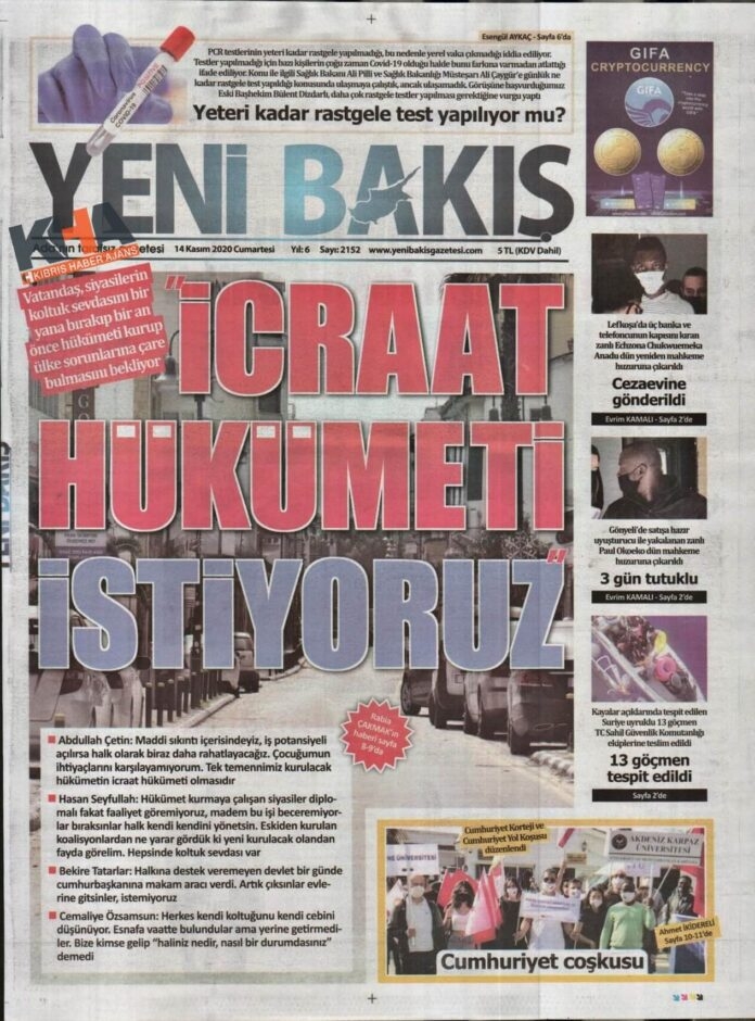 KKTC'de Gazeteler Bugün Ne Manşet Attı? (14 Kasım 2020 Cumartesi) galerisi resim 1