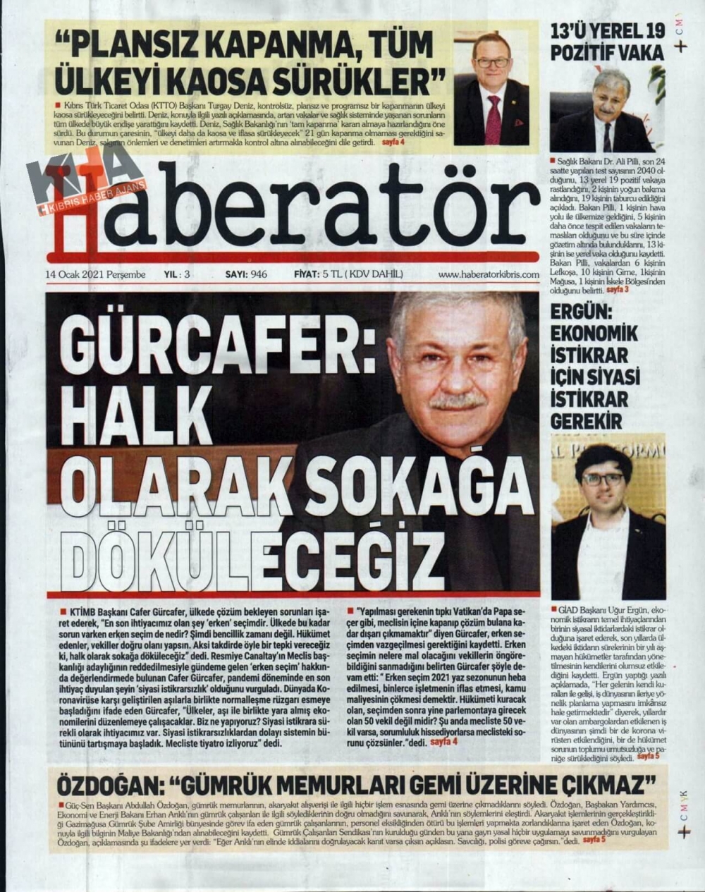 KKTC'de Gazeteler Bugün Ne Manşet Attı? (14 Ocak 2021)