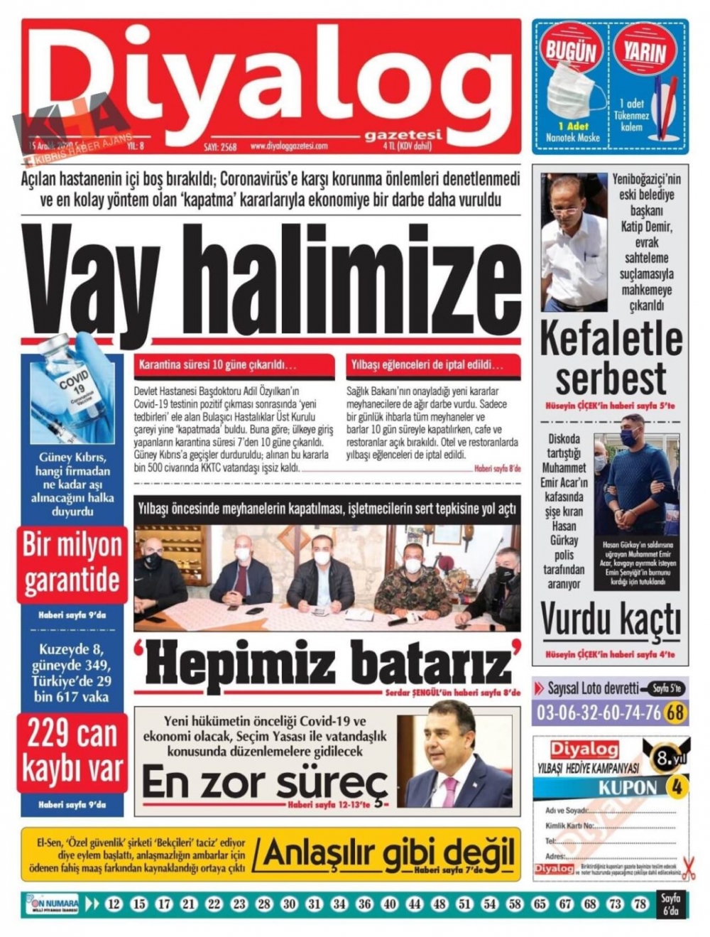 KKTC'de Gazeteler Bugün Ne Manşet Attı? ( 15 Aralık 2020 Salı )