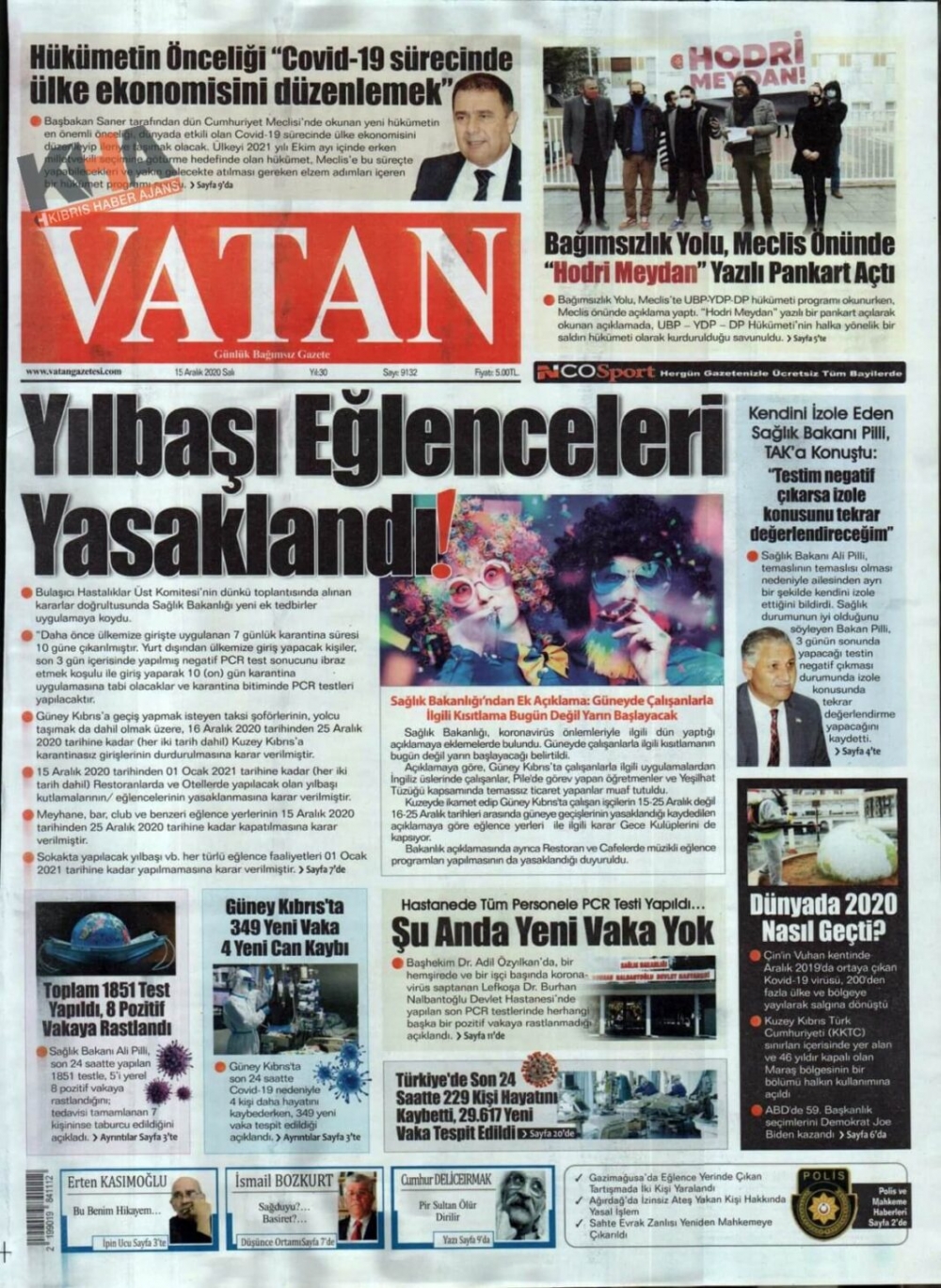 KKTC'de Gazeteler Bugün Ne Manşet Attı? ( 15 Aralık 2020 Salı )
