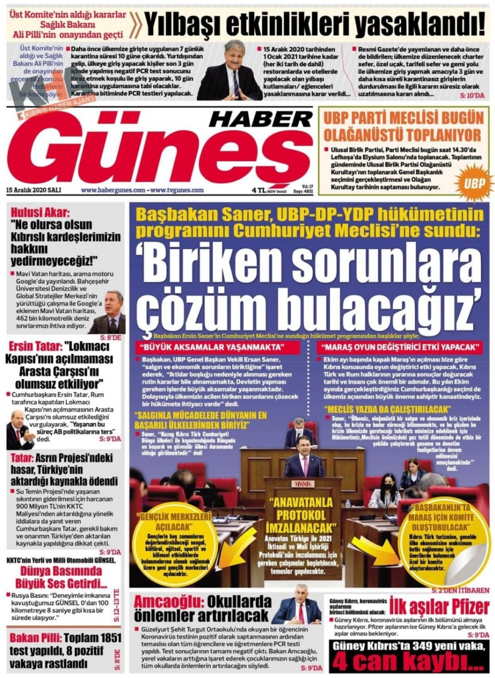 KKTC'de Gazeteler Bugün Ne Manşet Attı? ( 15 Aralık 2020 Salı )
