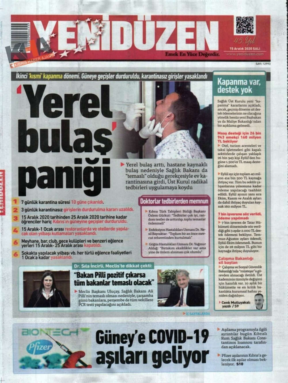 KKTC'de Gazeteler Bugün Ne Manşet Attı? ( 15 Aralık 2020 Salı )