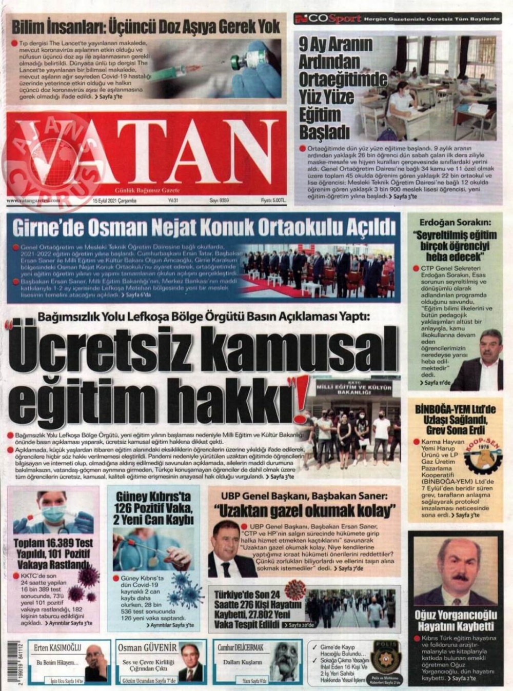 KKTC'de Gazeteler Bugün Ne Manşet Attı? (15 Eylül 2021)