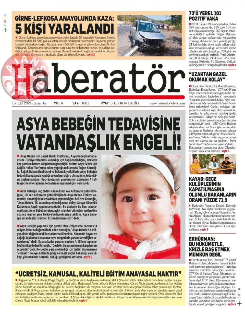 KKTC'de Gazeteler Bugün Ne Manşet Attı? (15 Eylül 2021)