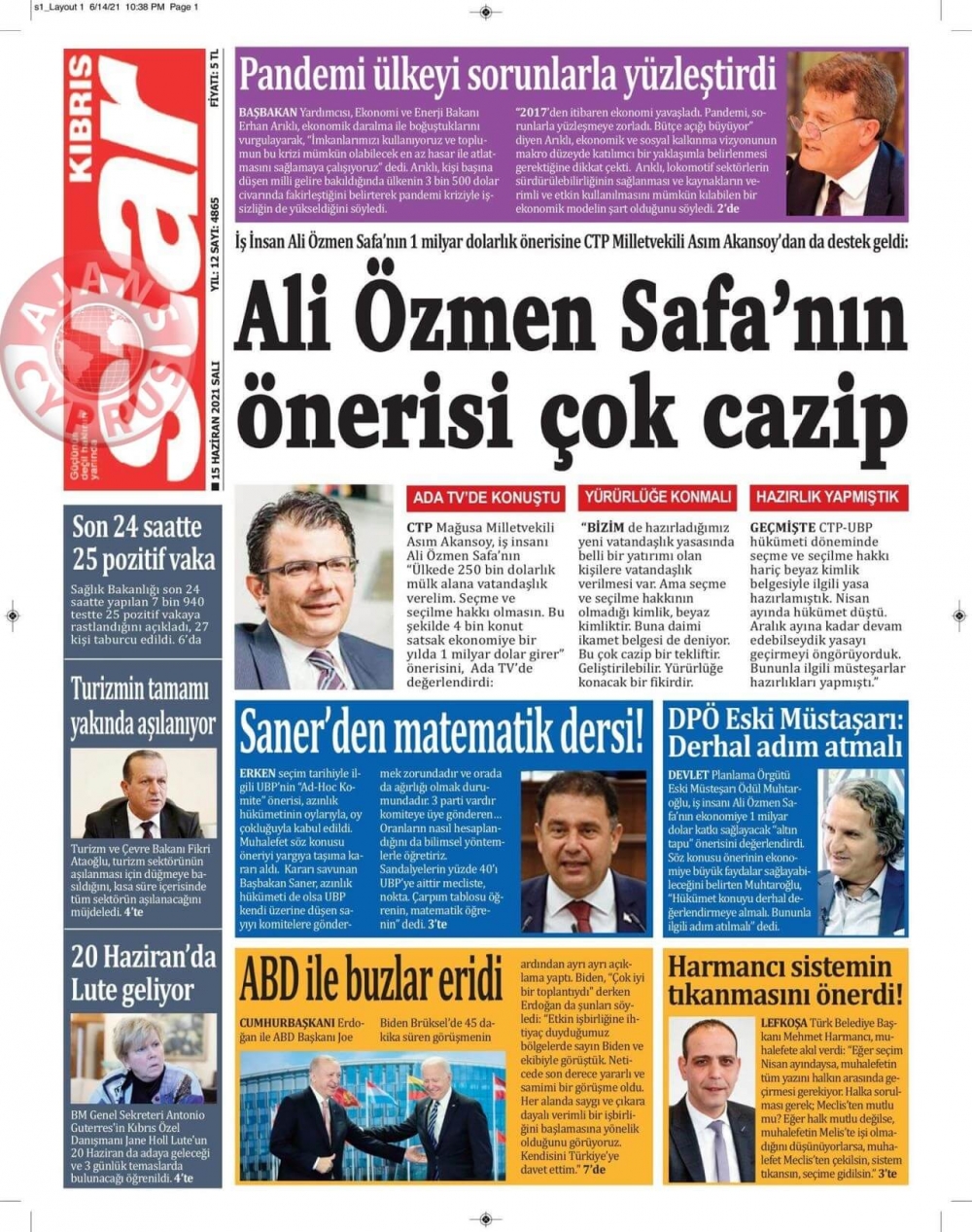 KKTC'de Gazeteler Bugün Ne Manşet Attı? (15 Haziran 2021)