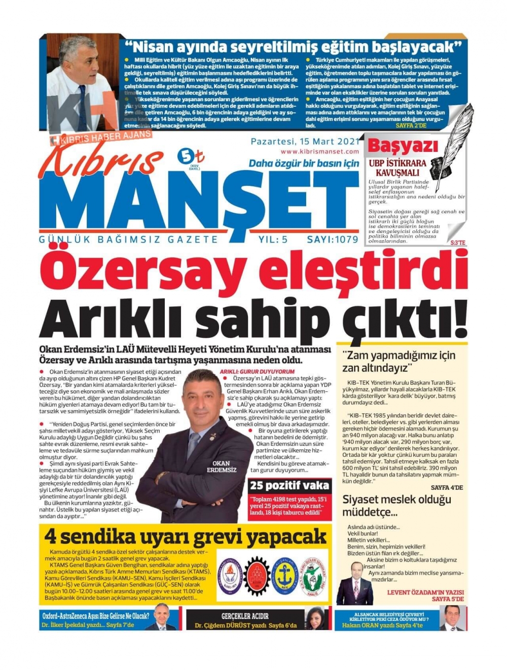 KKTC'de Gazeteler Bugün Ne Manşet Attı? (15 Mart 2021)