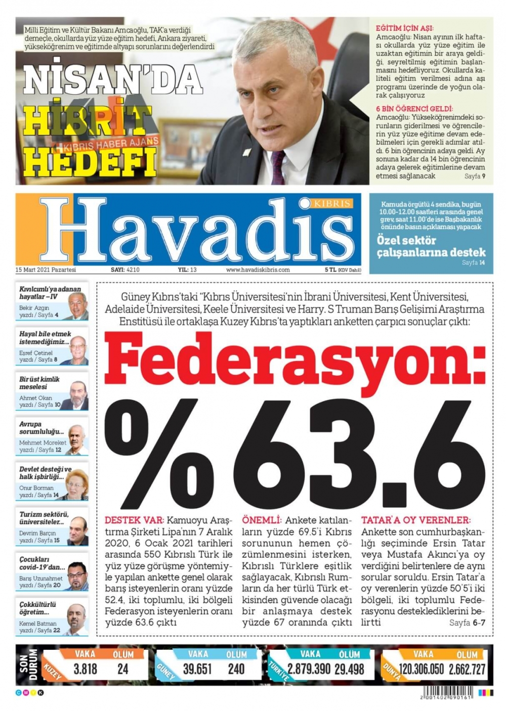 KKTC'de Gazeteler Bugün Ne Manşet Attı? (15 Mart 2021)