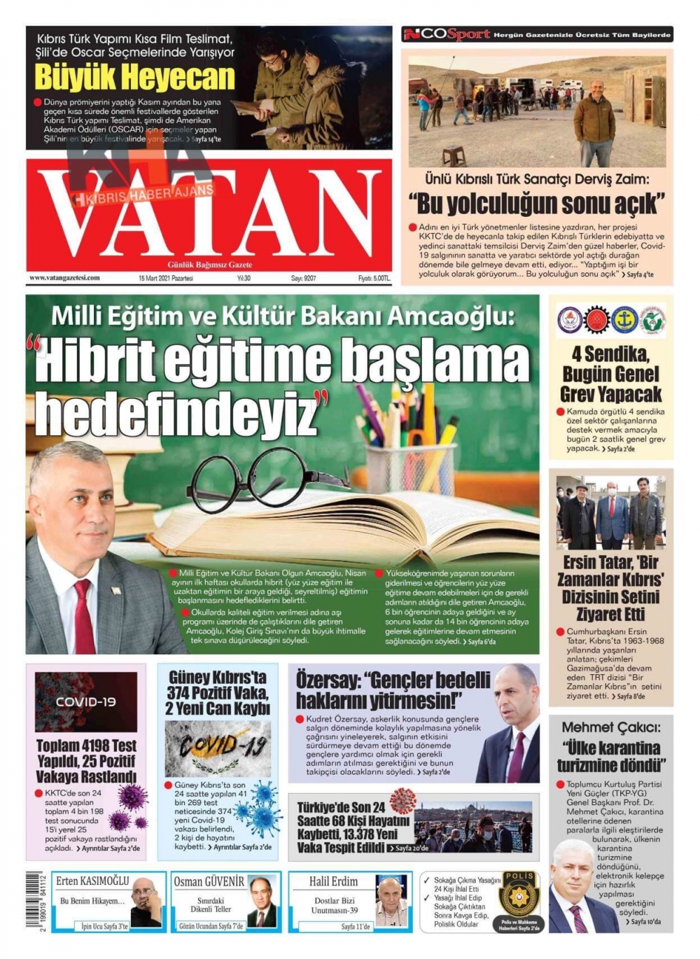 KKTC'de Gazeteler Bugün Ne Manşet Attı? (15 Mart 2021)