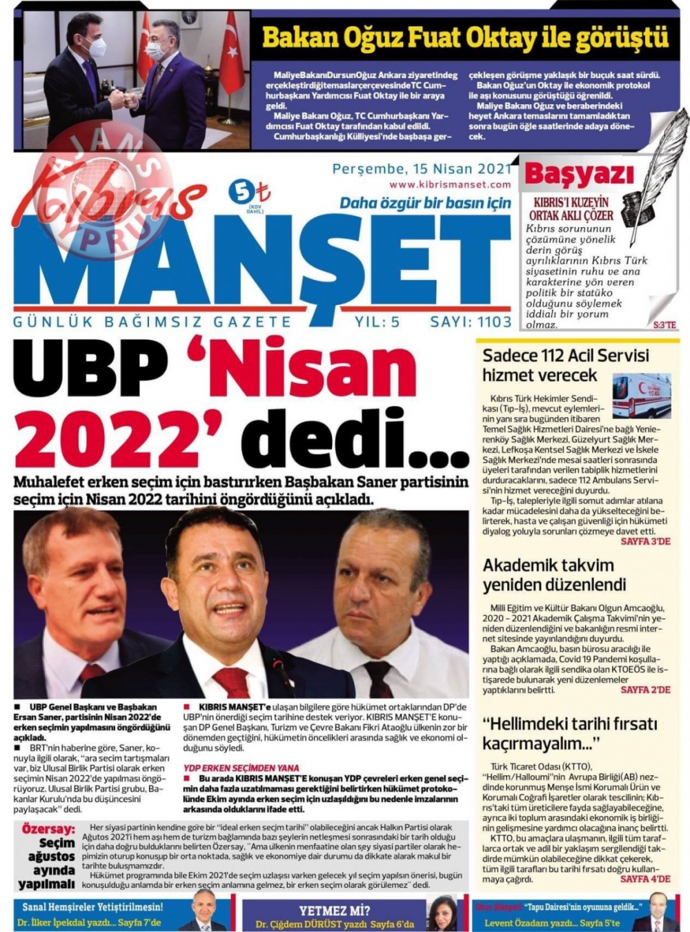 KKTC'de Gazeteler Bugün Ne Manşet Attı? (15 Nisan 2021)