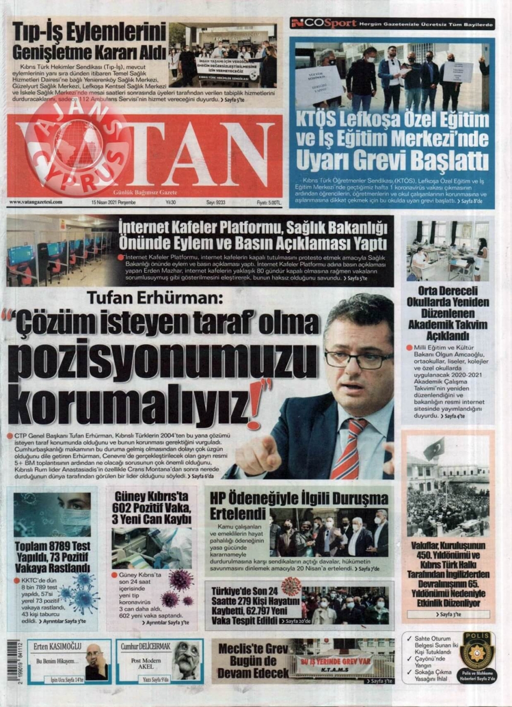 KKTC'de Gazeteler Bugün Ne Manşet Attı? (15 Nisan 2021)