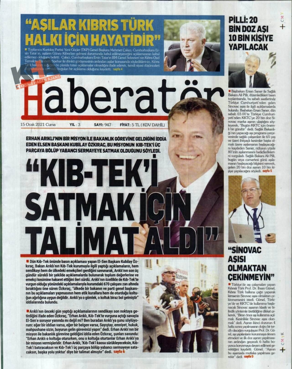 KKTC'de Gazeteler Bugün Ne Manşet Attı? (15 Ocak 2021)