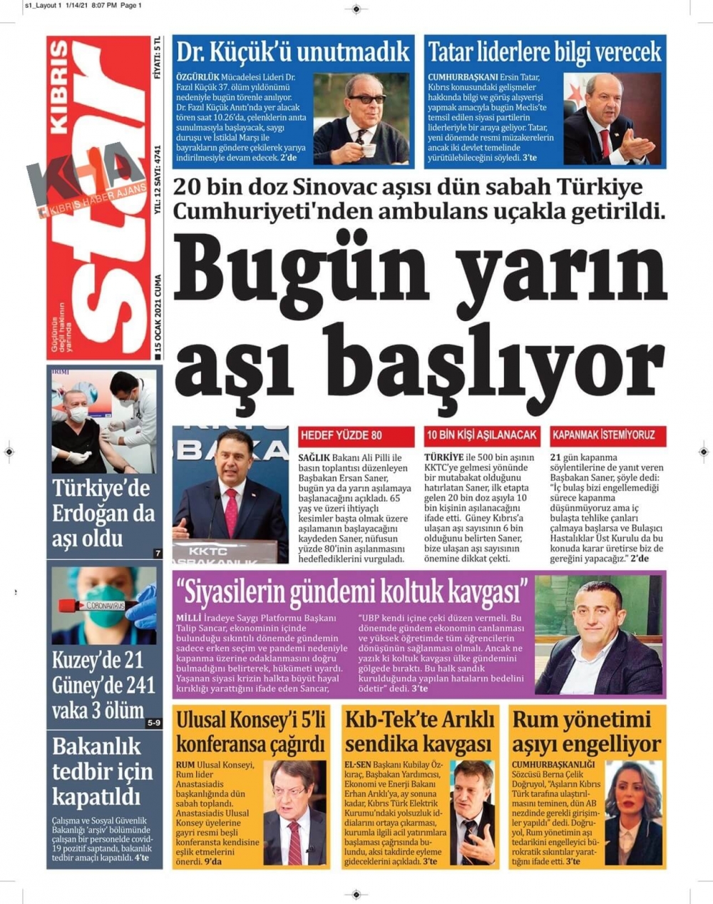 KKTC'de Gazeteler Bugün Ne Manşet Attı? (15 Ocak 2021)