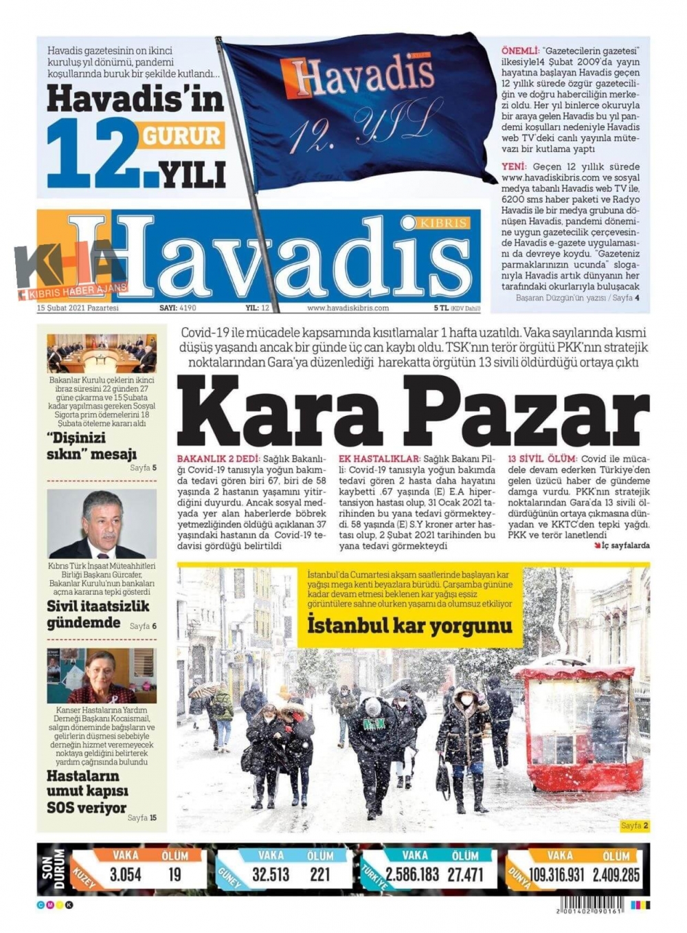 KKTC'de Gazeteler Bugün Ne Manşet Attı? (15 Şubat 2021)