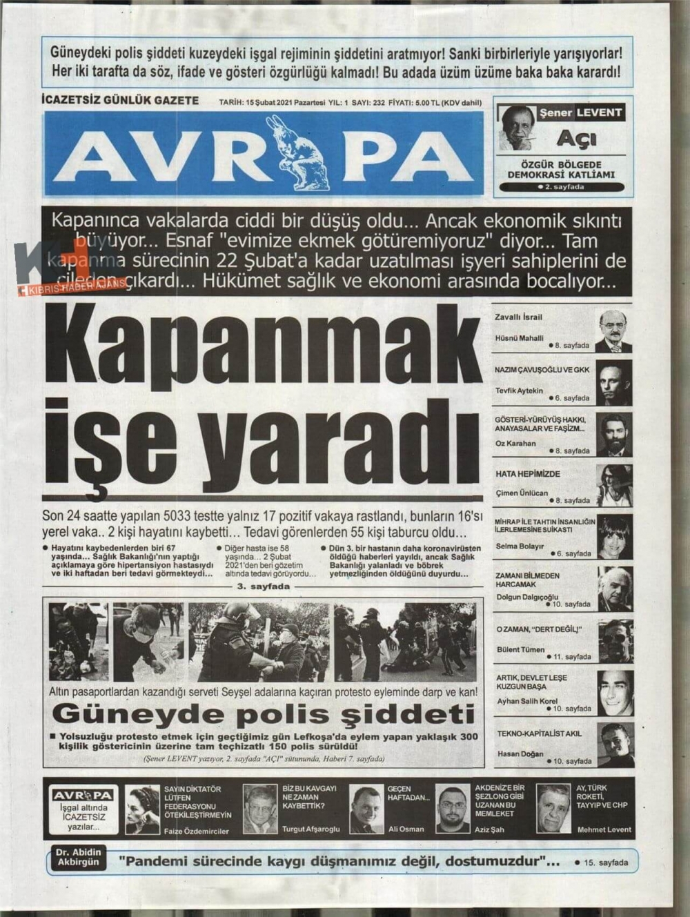 KKTC'de Gazeteler Bugün Ne Manşet Attı? (15 Şubat 2021)