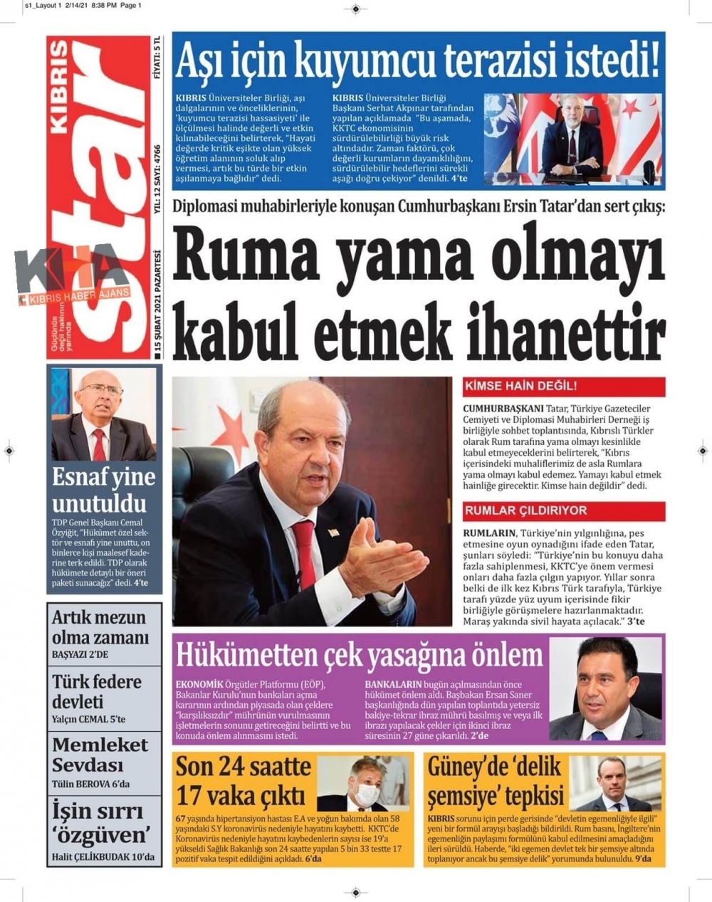 KKTC'de Gazeteler Bugün Ne Manşet Attı? (15 Şubat 2021)