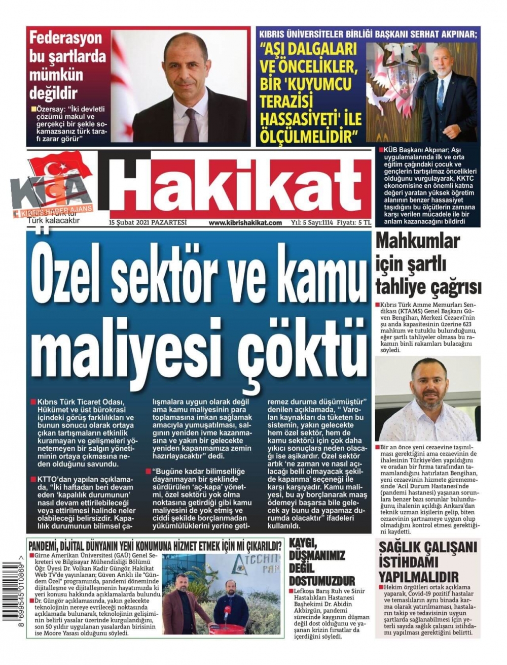 KKTC'de Gazeteler Bugün Ne Manşet Attı? (15 Şubat 2021)