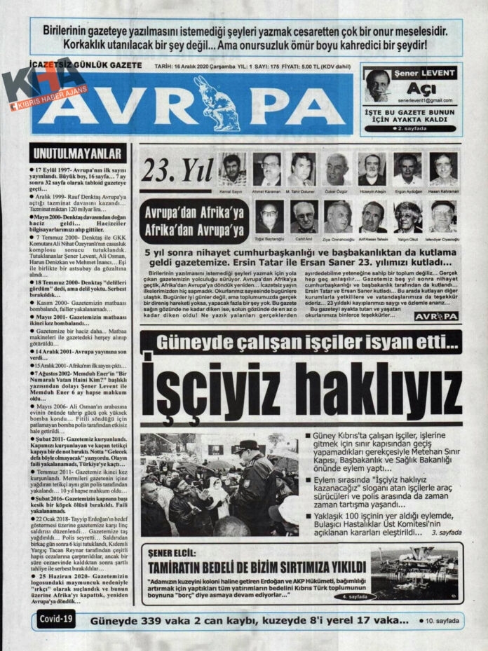 KKTC'de Gazeteler Bugün Ne Manşet Attı? ( 16 Aralık 2020 Çarşamba )
