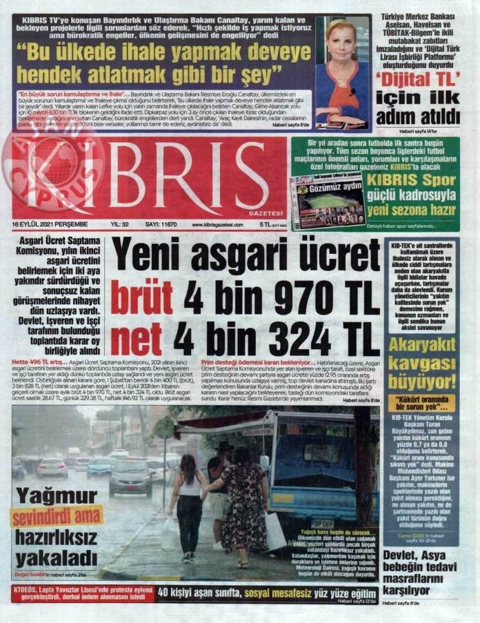 KKTC'de Gazeteler Bugün Ne Manşet Attı? (16 Eylül 2021)