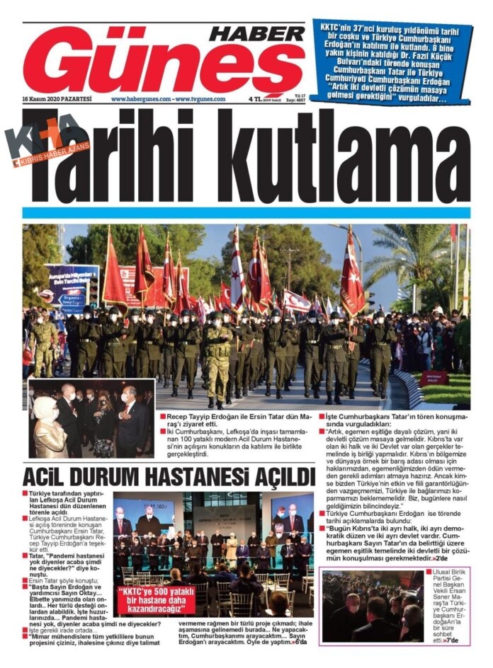 KKTC'de Gazeteler Bugün Ne Manşet Attı? (16 Kasım 2020 Pazartesi)