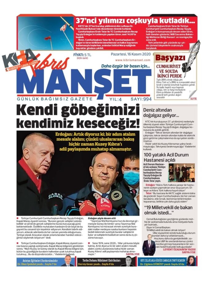 KKTC'de Gazeteler Bugün Ne Manşet Attı? (16 Kasım 2020 Pazartesi)