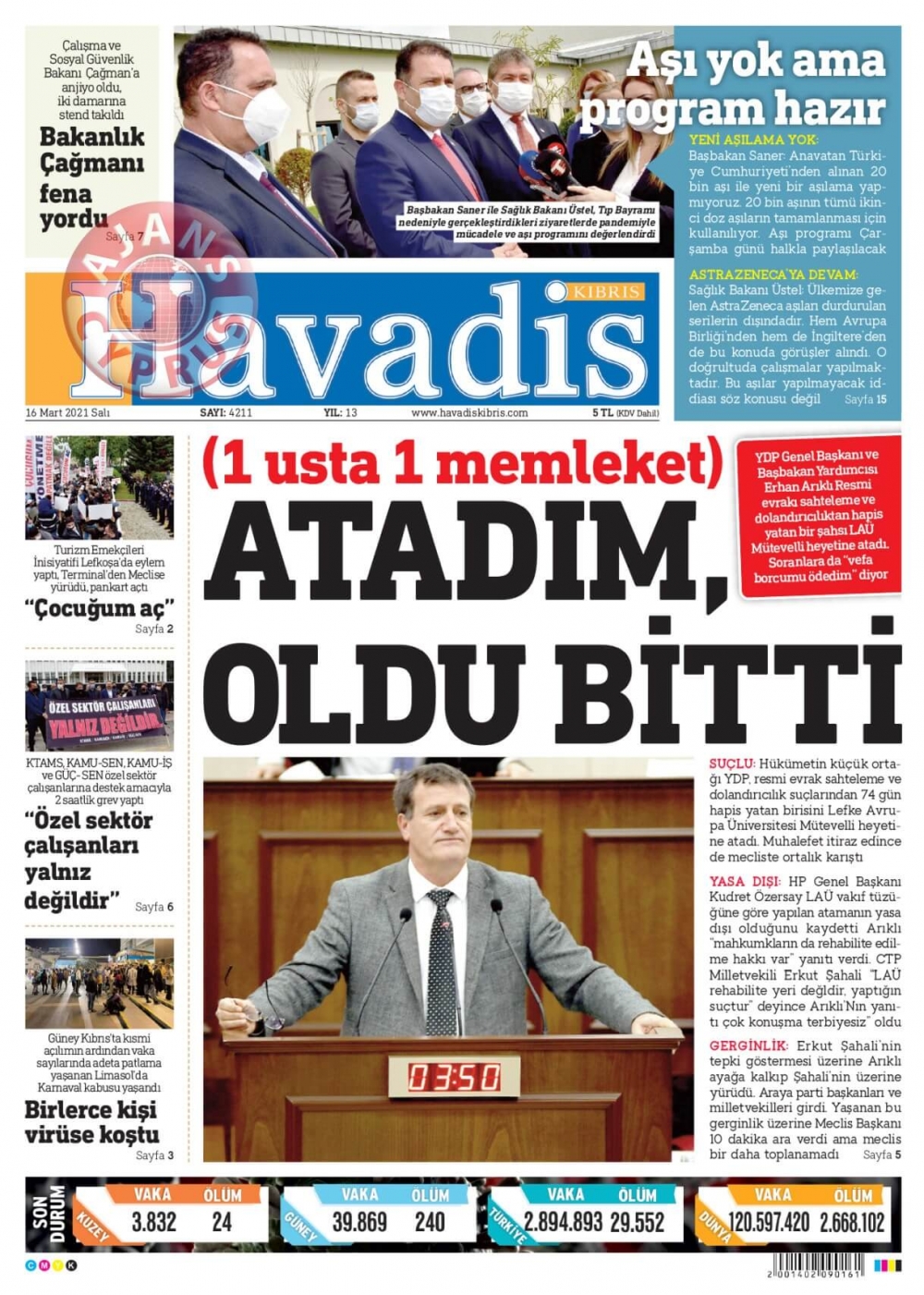 KKTC'de Gazeteler Bugün Ne Manşet Attı? (16 Mart 2021)